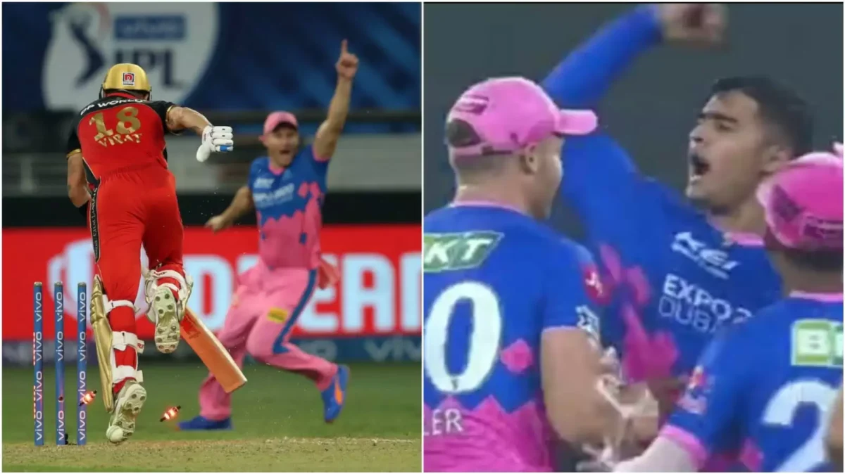 Kohli looked to drop a Chris Morris delivery to point and take a quick single, but unfortunately took on one of the best fielders in the Rajasthan Royals side. Parag took his time with the throw and took down the stumps at the non-striker’s end perfectly. A smiling Kohli gave the impression that he had made ground, but replays revealed that he was well short of his mark.