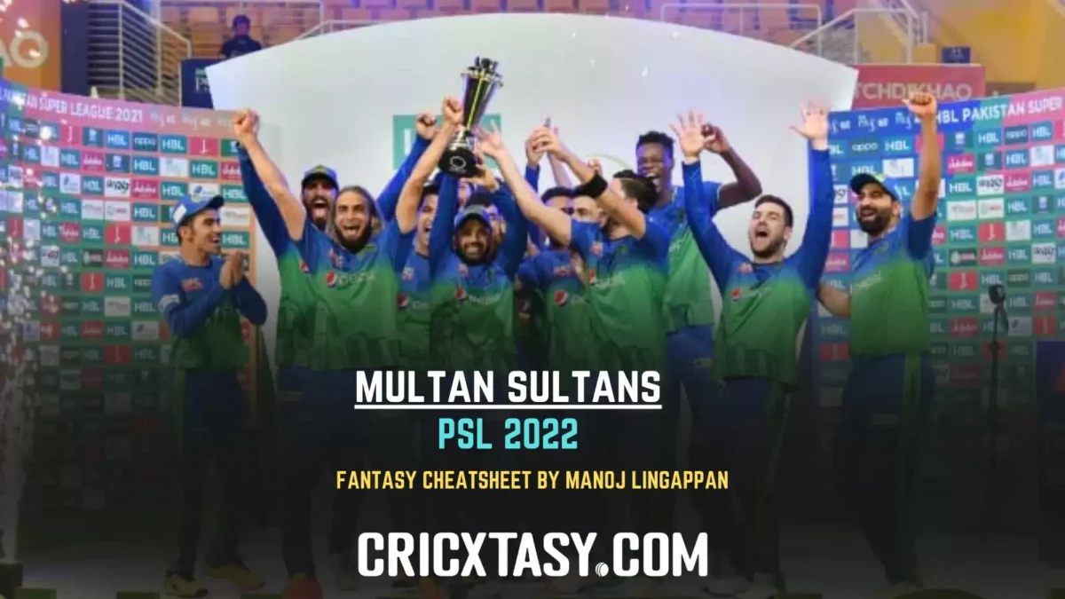 A thorough look into the signings, team news and players availability of the Multan Sultans in the 2022 Pakistan Super League (PSL 7) along with a fantasy cheat sheet providing the fantasy potential of the Multan Sultan players.