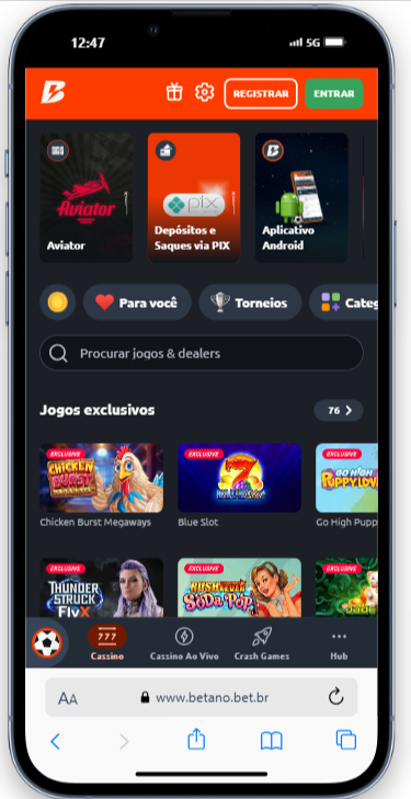 A Betano é um cassino online com mais de 10 anos de história. Os fãs de cassino podem fazer a festa com o acervo da casa, que hoje conta com mais de 3.000 jogos em categorias como slots, crash games, jogos de cassino ao vivo, jogos de mesa e mais!