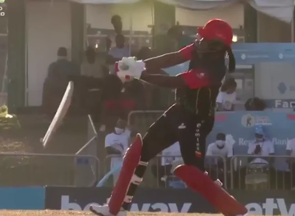 WATCH: Odean Smith breaks Chris Gayle’s bat; Gayle responds with 4, 4, 6, 4