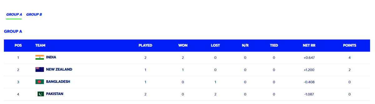 Team India secured their second straight win in the 2025 Champions Trophy after they defeated arch-rivals Pakistan by six wickets in Dubai on Sunday. The win means that India have now jumped to the top of the Group A standings with four points from two matches. New Zealand are in second place with two matches from one game and they take on Bangladesh in the other Group A match on Monday.
