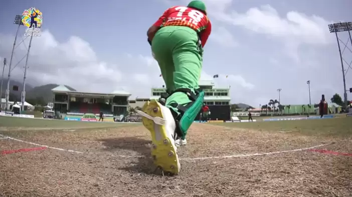 Guyana batsman Shoaib Malik, who made 5 off 12 balls in the game, was seen batting with a plastic fork stuck beneath his shoe. The visuals came out after the reverse view from the stump cam was captured by the Twitter user during a replay.