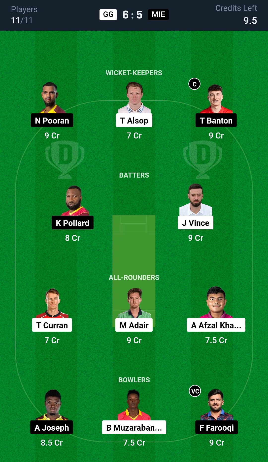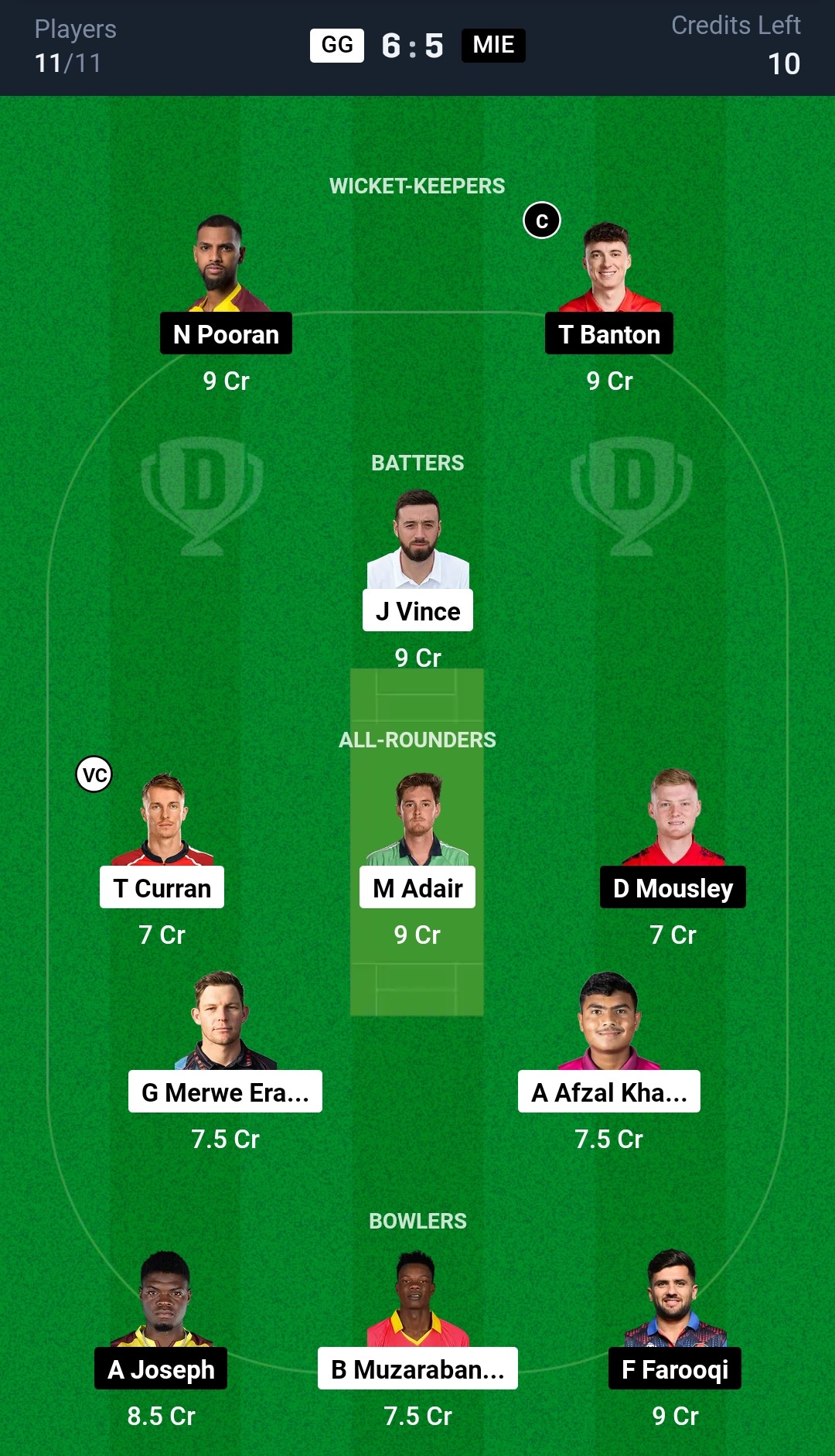 MI Emirates hold an edge heading into this game, thanks to a much superior squad on paper. The likes of Tom Banton, Nicholas Pooran, Kieron Pollard and Andre Fletcher are in good form with the bat. Fazalhaq Farooqi, Muhammad Rohid and Alzarri Joseph have been excellent with the ball. Expect MI Emirates to win the match.