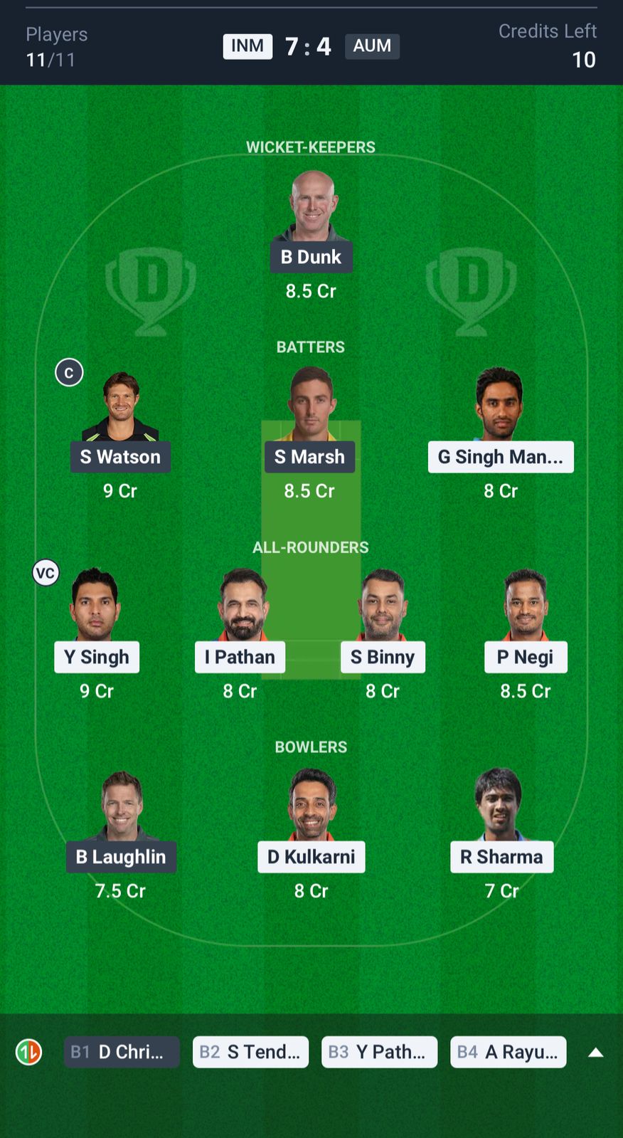 India Masters: Sachin Tendulkar (c), Ambati Rayudu (wk), Gurkeerat Singh Mann, Stuart Binny, Yuvraj Singh, Yusuf Pathan, Irfan Pathan, Pawan Negi, Dhawal Kulkarni, Abhimanyu Mithun, Rahul Sharma.