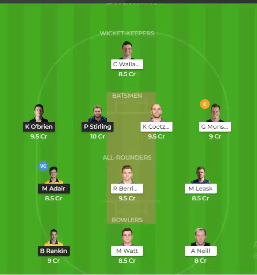 George Munsey walks into the Dream XI side considering the kind of form that he is in currently. Paul Stirling, Craig Wallance and Mark Adair are others who could be expected to carve a sizable impact in the game.
