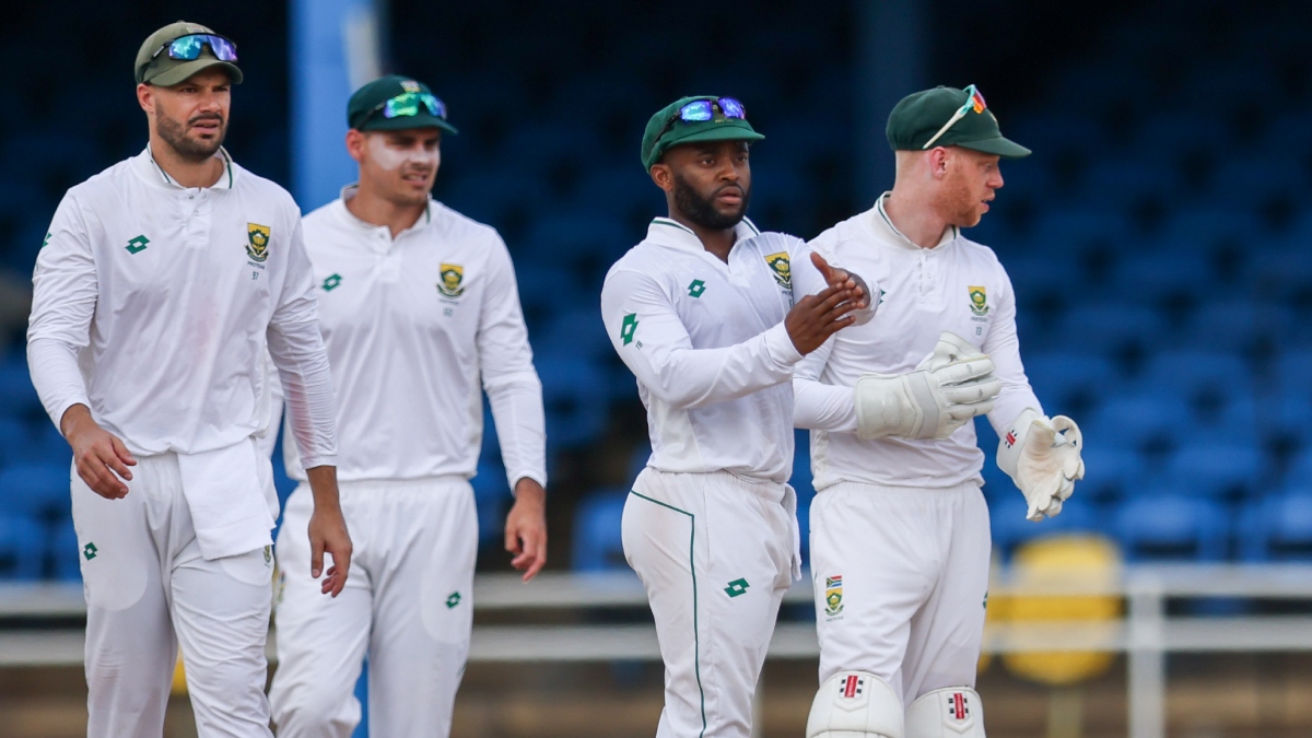 South Africa: Tony de Zorzi, Aiden Markram, Tristan Stubbs, Temba Bavuma (c), David Bedingham, Kyle Verreynne (wk), Wiaan Mulder, Marco Jansen, Gerald Coetzee, Kagiso Rabada, Keshav Maharaj
