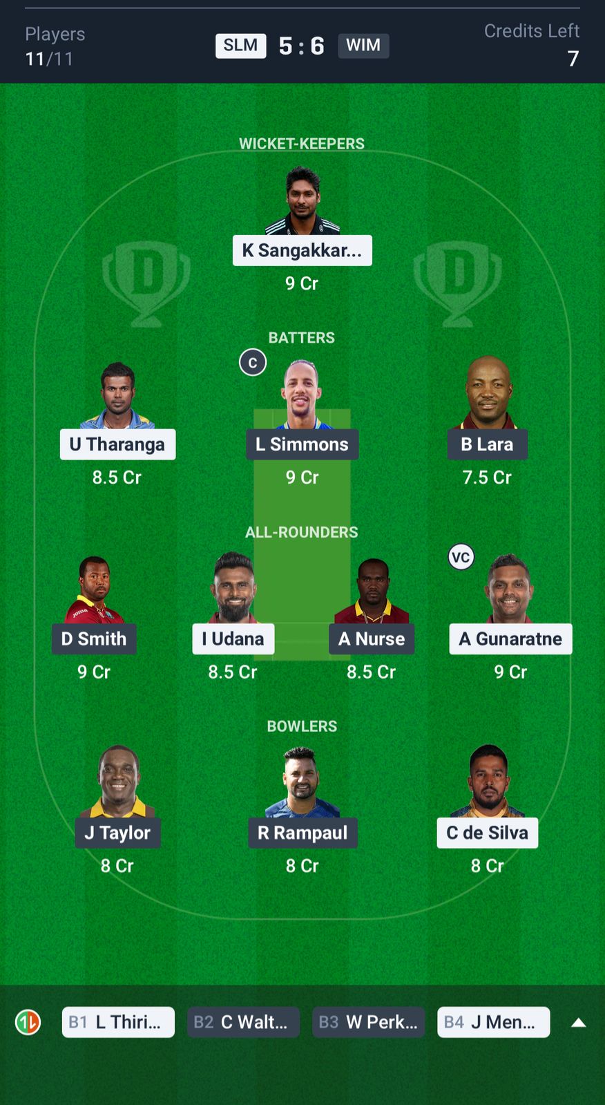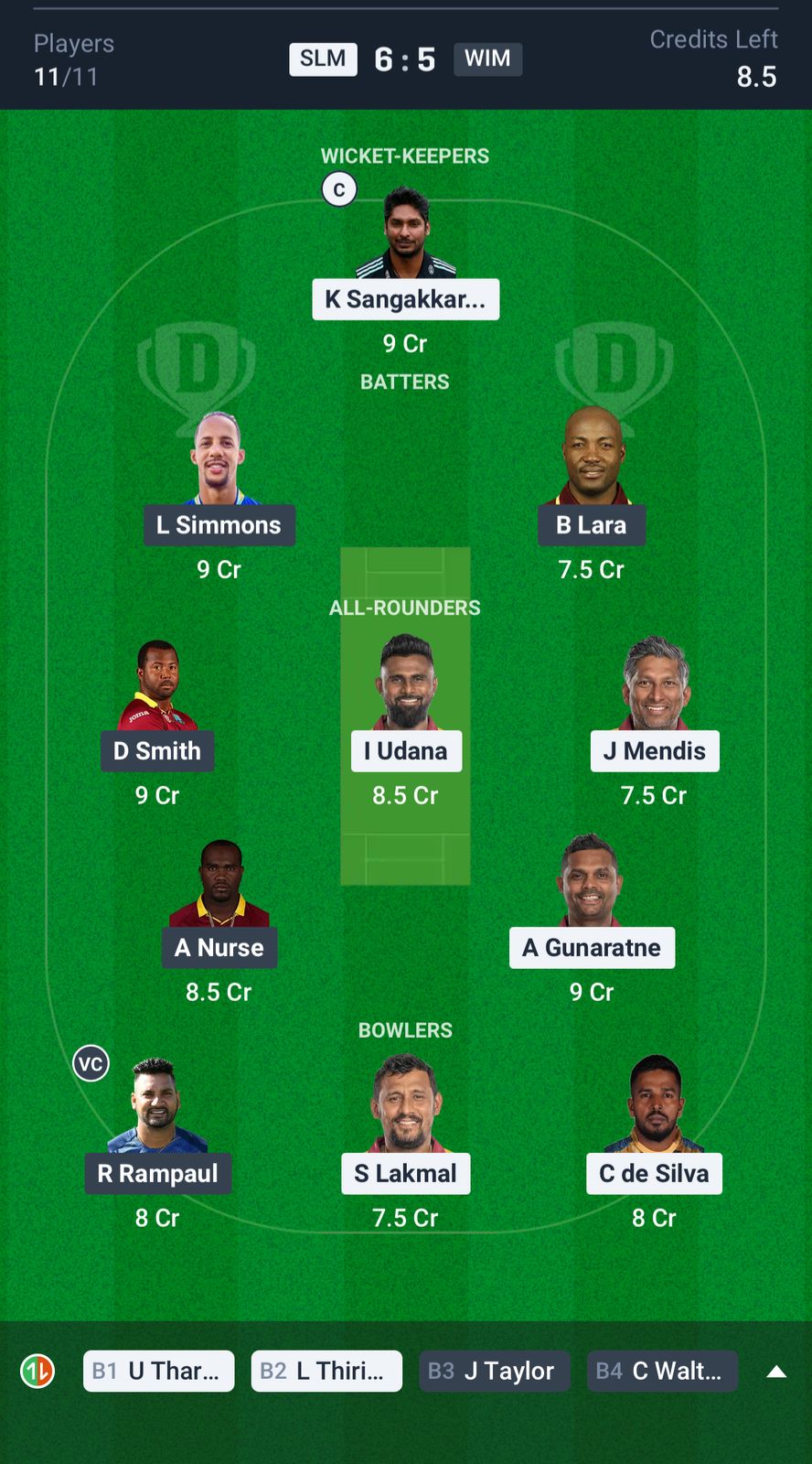 West Indies Masters: Dwayne Smith, Kirk Edwards, Lendl Simmons, Brian Lara (c), William Perkins (w), Jonathan Carter, Narsingh Deonarine, Ashley Nurse, Jerome Taylor, Tino Best, Sulieman Benn.