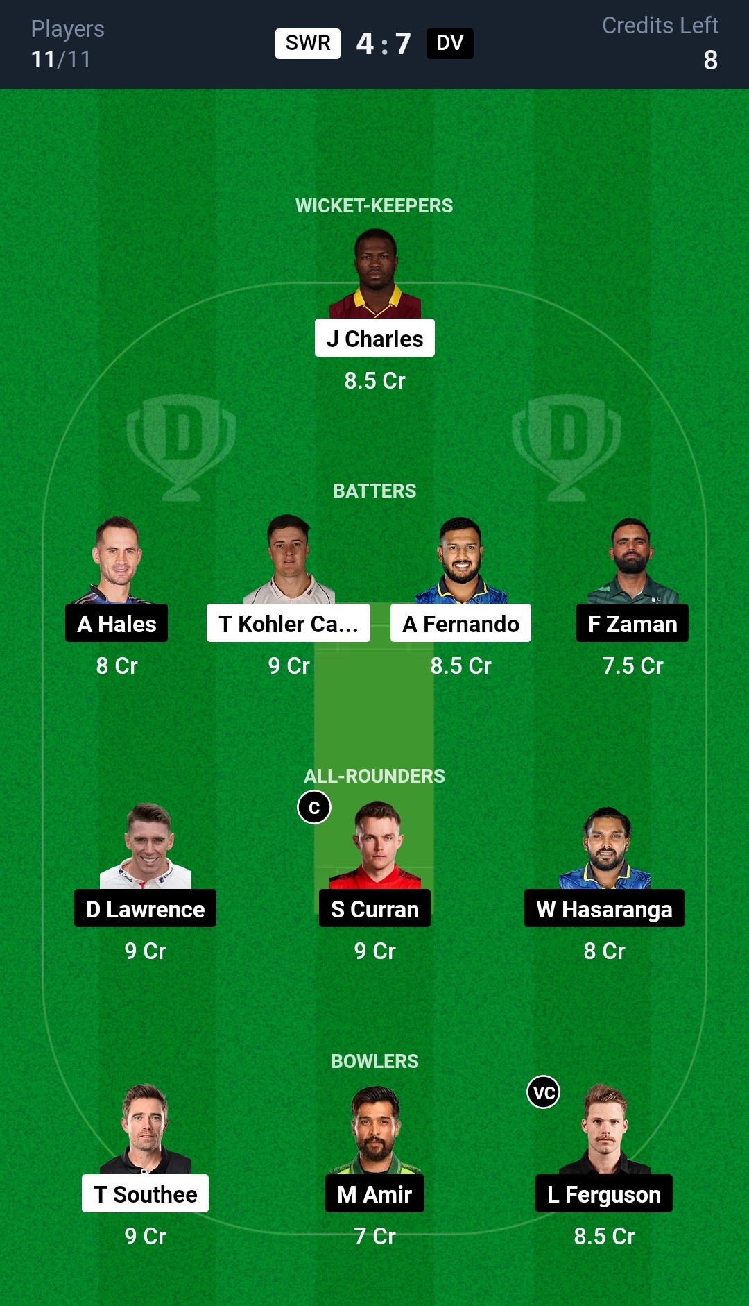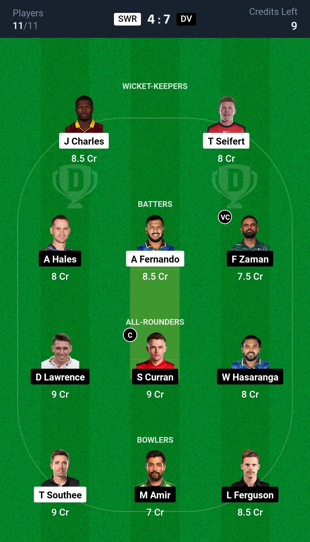 Desert Vipers: Fakhar Zaman, Alex Hales, Dan Lawrence, Sam Curran, Sherfane Rutherford, Tanish Suri (wk), Wanindu Hasaranga, Lockie Ferguson (c), Mohammad Amir, Luke Wood, Ali Naseer