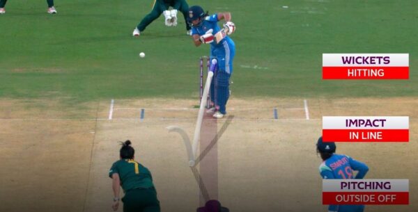 South Africa, however, were convinced and decided to use DRS but it turned out to be a no-ball and Rawal capitalised on the free hit with a boundary. Later ball tracking confirmed that Rawal got a big reprieve since the balls were crashing onto the wickets.