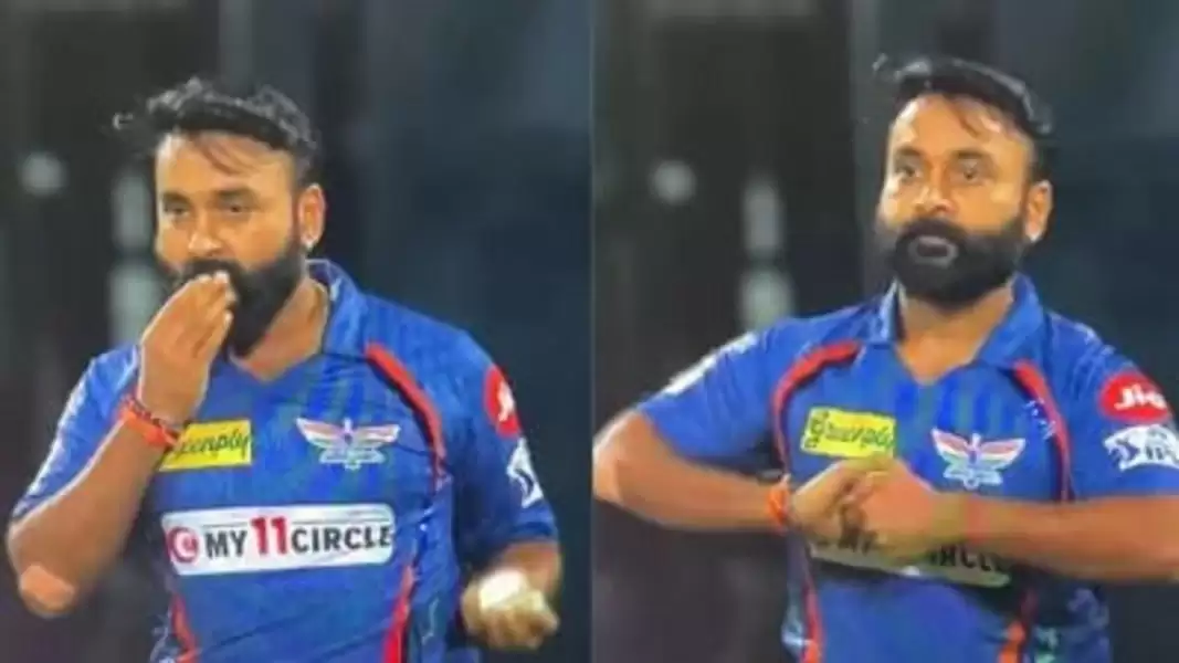 The Lucknow Super Giants wristspinner got the India and RCB batting great out caught off a ball that he tried shining via a banned manner as per ICC regulations.