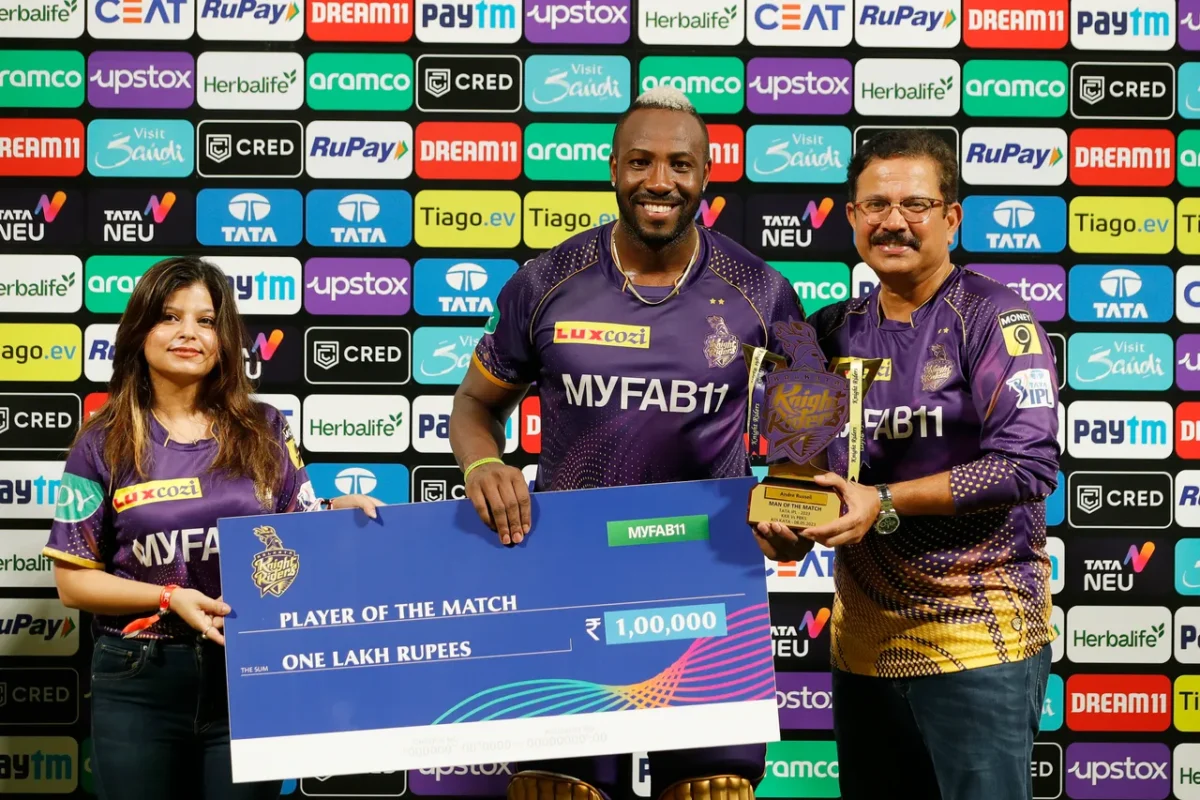 “I wanted to finish the game off, but we have a finisher this year in Rinku. He had asked me what if the ball beats you? Should we go for the run? I said, for sure! I have faith in him to finish it last ball. I get goosebumps seeing him doing what he’s been doing,” exclaimed Russell after winning the Man of the Match award.