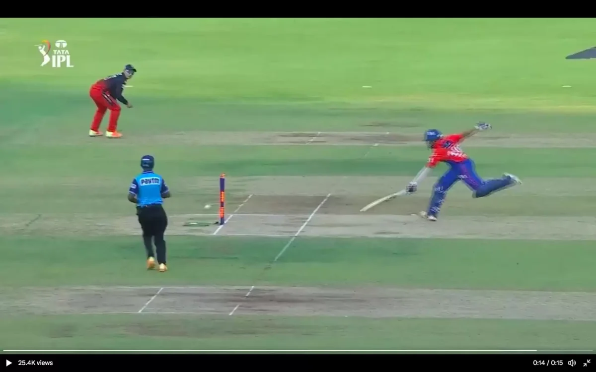 On the fourth ball of the over from Mohammed Siraj, Shaw placed the delivery towards cover and charged for a single. However, the batter was apprehensive for the run but continued regardless; he eventually fell way short of reaching the crease as Anuj Rawat dived, picked the delivery, and threw brilliantly towards the stumps to dismiss the opener.