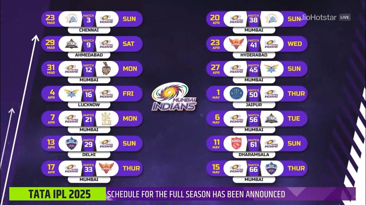 Here’s a list of MI’s home matches for IPL 2025.