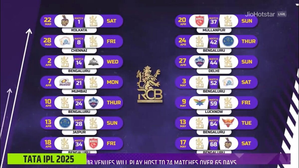 Here’s a list of RCB’s home matches for IPL 2025.