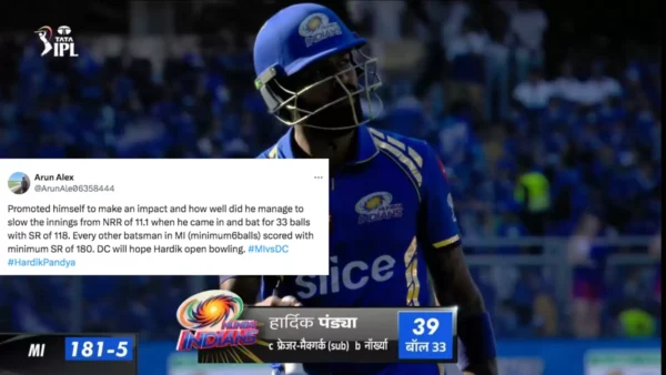 Following the knock, fans were quick to express their angst on social media about how Pandya’s knock slowed down the entire MI innings. Check of the reactions below.