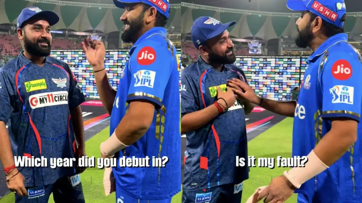 In the aftermath of the recent Indian Premier League (IPL 2024) match between Lucknow Super Giants (LSG) and Mumbai Indians (MI), veterans Rohit Sharma and Amit Mishra were spotted sharing a light-hearted conversation on the sidelines.