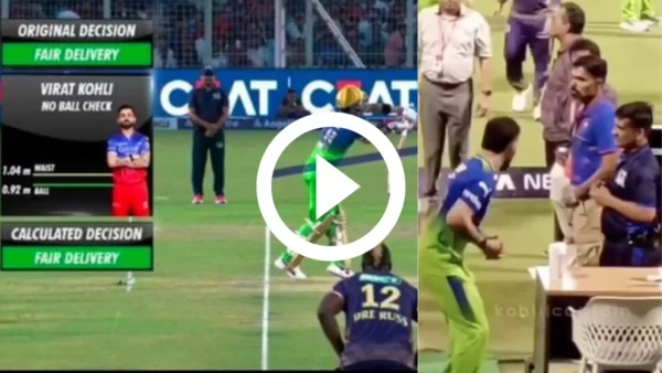 However, during the third over of RCB’s innings, Kohli lobbed one full-toss delivery straight to the bowler Harshit Rana. While the umpire declared it out, Kohli appealed for a review for a no-ball above waist height.
