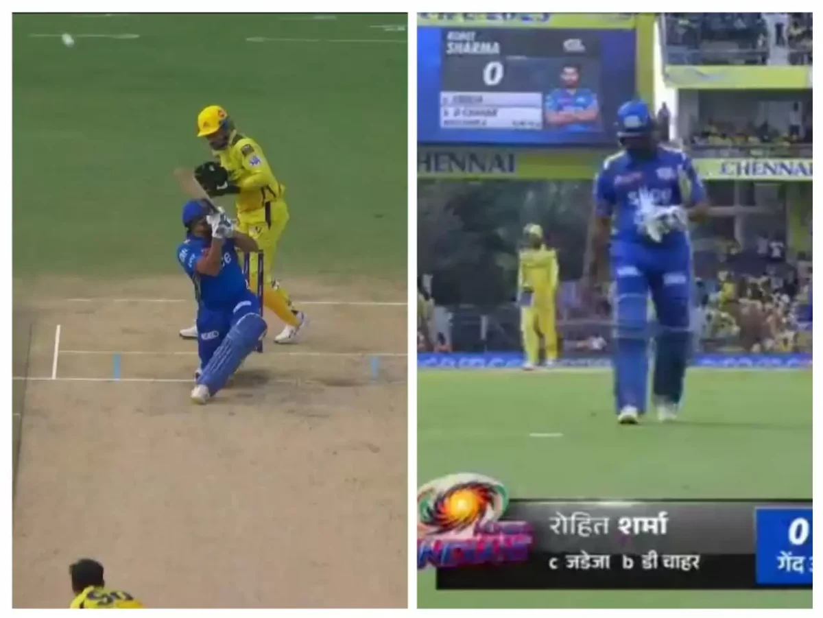 Deepak Chahar bowled a length delivery, and Rohit played a scoop shot, which didn’t come off the middle of the blade and went straight to Ravindra Jadeja, who was stationed at the point region. Chahar was seen pointing to MS Dhoni in celebration, which confirms it was Dhoni’s strategy, and Rohit fell into the trap.