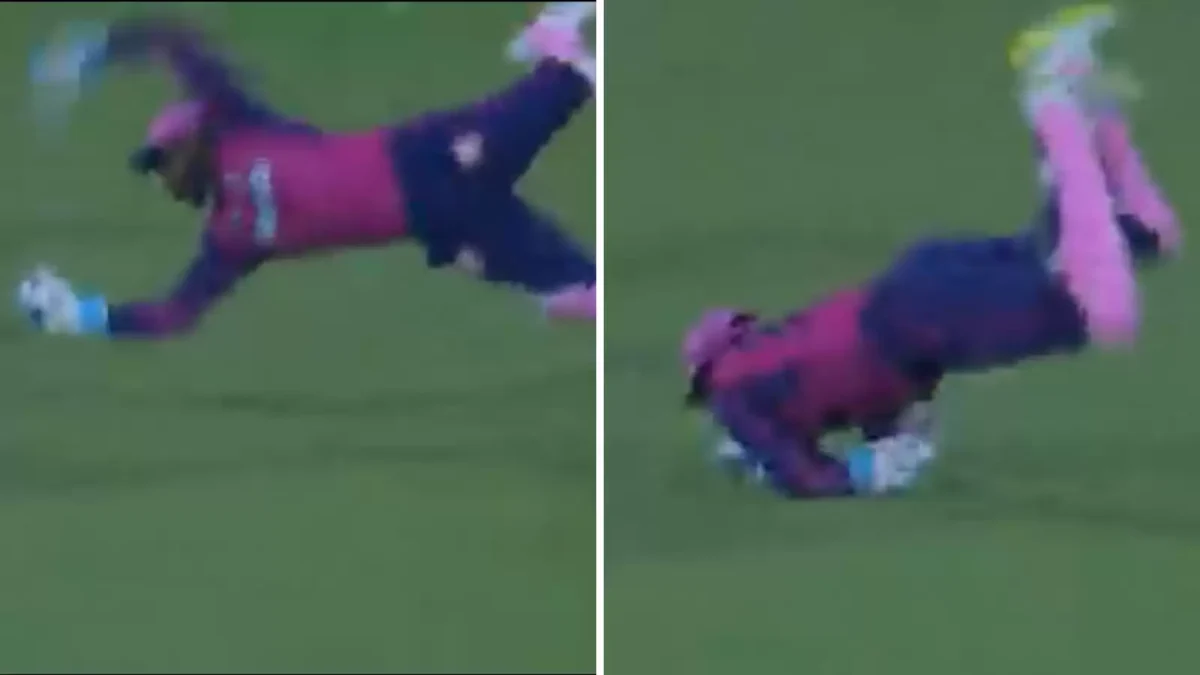 In the ongoing match on Saturday’s double-header between Rajasthan Royals (RR) and Delhi Capitals (DC), RR skipper Sanju Samson pulled off a stunning one-handed catch to dismiss DC opener Prithvi Shaw. The right-hander was dismissed as early as the first over off Trent Boult’s bowling as DC suffered an early setback.