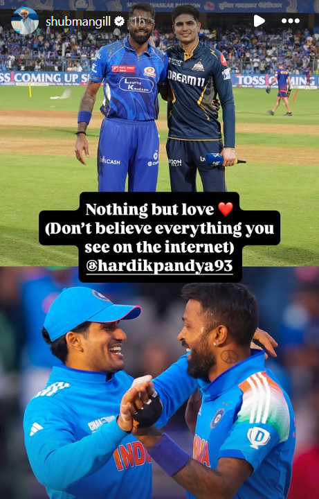 Shortly after, Hardik reshared Gill’s Instagram story on his account, further clearing any notion of bad blood between the two national teammates.