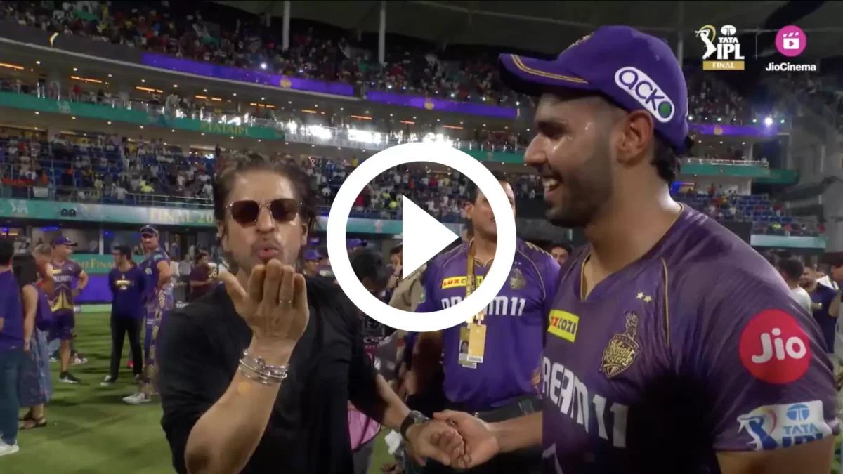 Nevertheless, although he couldn’t repeat it on the pitch, the celebration caught on and went viral on social media. And today, SRK gave the bowler a perfect tribute for his contributions in KKR’s supremely successful season by imitating a flying-kiss.