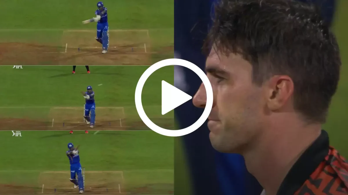Cummins bowled a slower short-length delivery on the fourth ball, and Suryakumar Yadav was waiting for it. He waited for it to come and whacked it wide of the square-leg region for a boundary, and Pat Cummins couldn’t do anything apart from giving a shocking look and shaking his head.