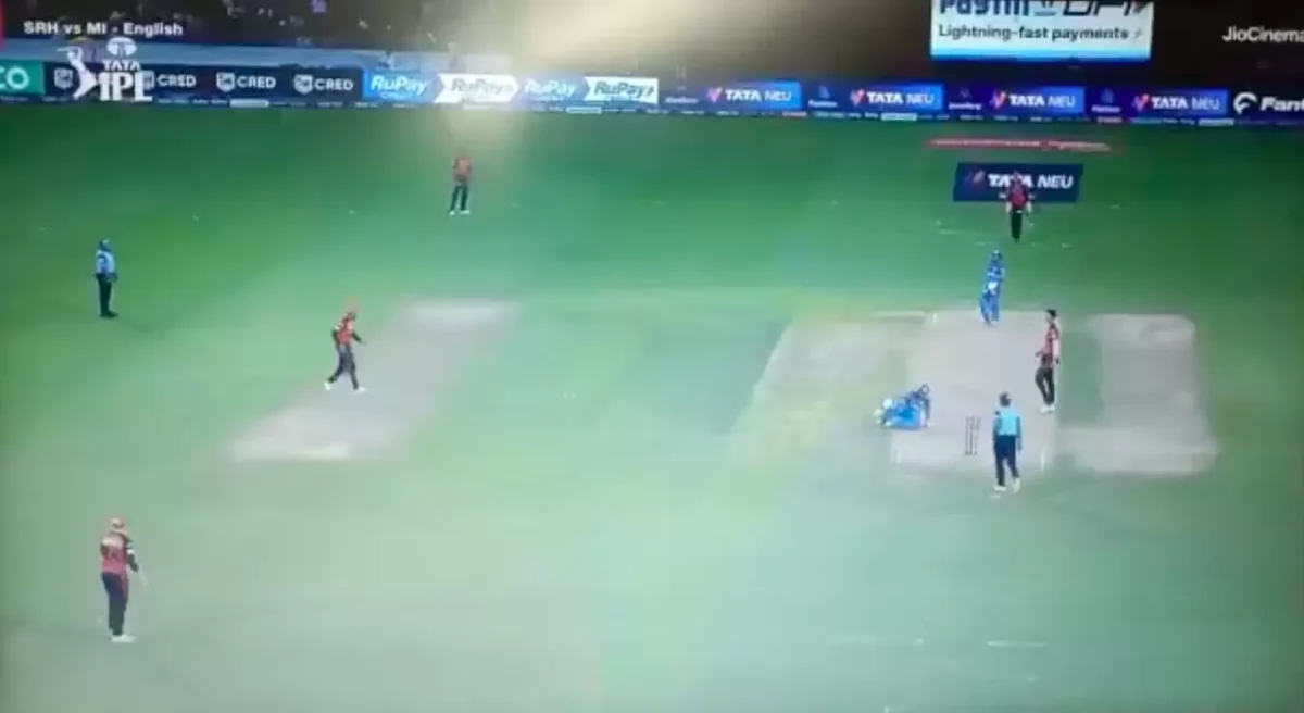 During the ongoing IPL 2023 fixture between Mumbai Indians (MI) and Sunrisers Hyderabad (SRH), Ishan Kishan hit a shot that bludgeoned Rohit Sharma’s pads. It was a smashing hit from the youngster which went directly to the non-striker’s end. However, Rohit nearly survived an injury scare right at the start of the match at the hands of his own teammate. Rohit Sharma smiled after the ball hit him and Ishan Kishan also gave a smile to the skipper.