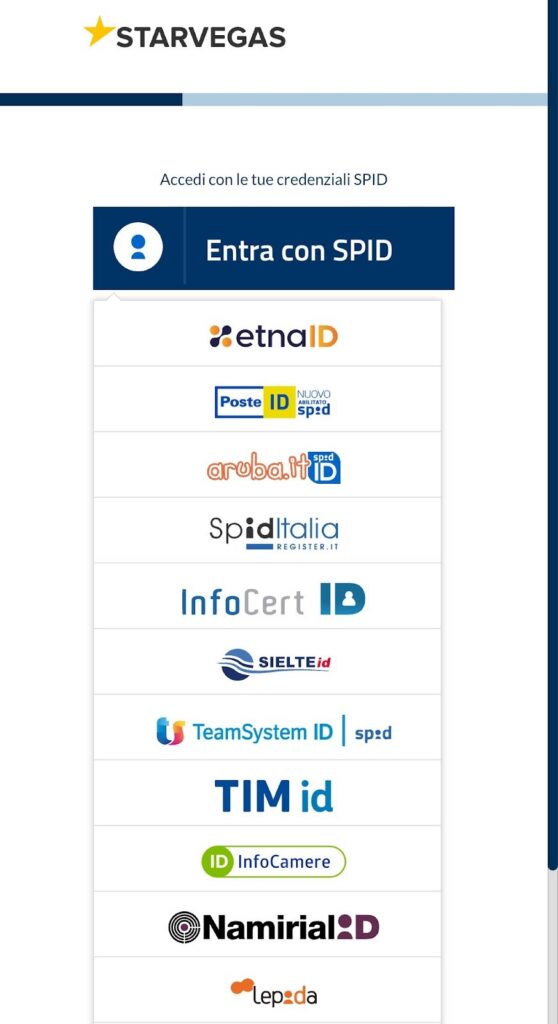 All’apertura dell’app o del sito mobile troverai il pulsante “Registrati”. StarVegas consente sia la registrazione classica sia quella con SPID, che velocizza il processo.