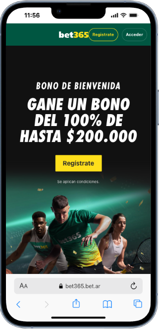 El bono de bienvenida bet365 del 100% hasta $$200.000ARS disponible en la bet365 App se activa al registrarte, validar tu cuenta y hacer un depósito mínimo de $500. Podés ingresar el código de bono bet365 en el registro o en la sección de depósitos. El bono cubre deportes y casino, con rollover y cuotas mínimas a cumplir en un plazo establecido.