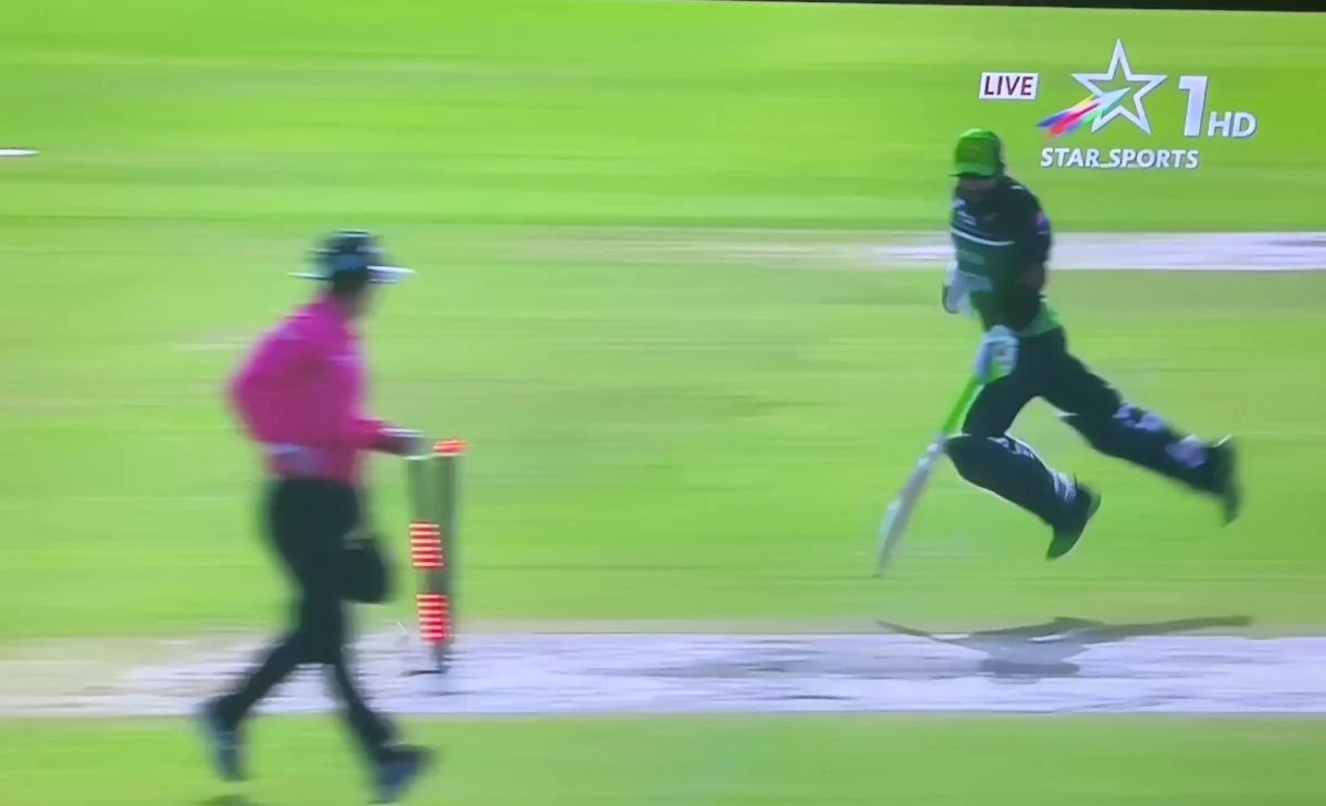 In an unforeseen twist of fate, Rizwan fumbled as he failed to make contact between his bat and the ground, opting instead for an ill-timed jump.