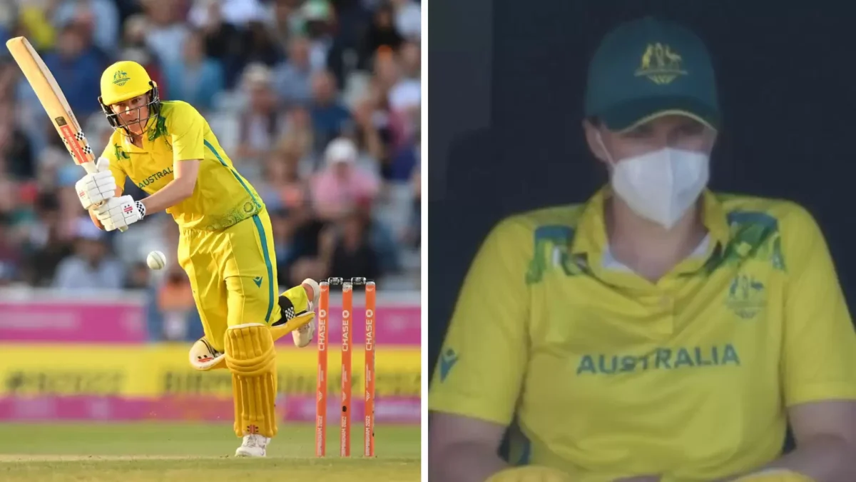 Tahlia McGrath sitting alone with a mask on, listed to come in to bat next at No.4 for Australia despite testing positive for COVID this morning – she’s been allowed to play in the gold medal match #INDvAUS #B2022 pic.twitter.com/lby04u83Vn