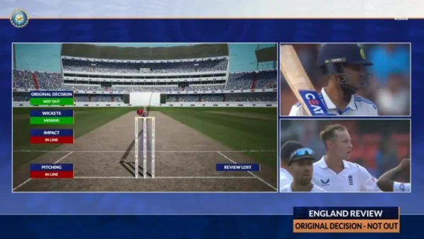 While Duckett acted perplexed, the DRS showing the ball missing the stumps was fair. Tom Hartley is a tall bowler with a high-arm release, and Gill, a tall batter, took a giant stride forward, saving the batter. However, Duckett didn’t miss his chance to blame the DRS, which is hard to manipulate unless a different ball is shown for tracking.