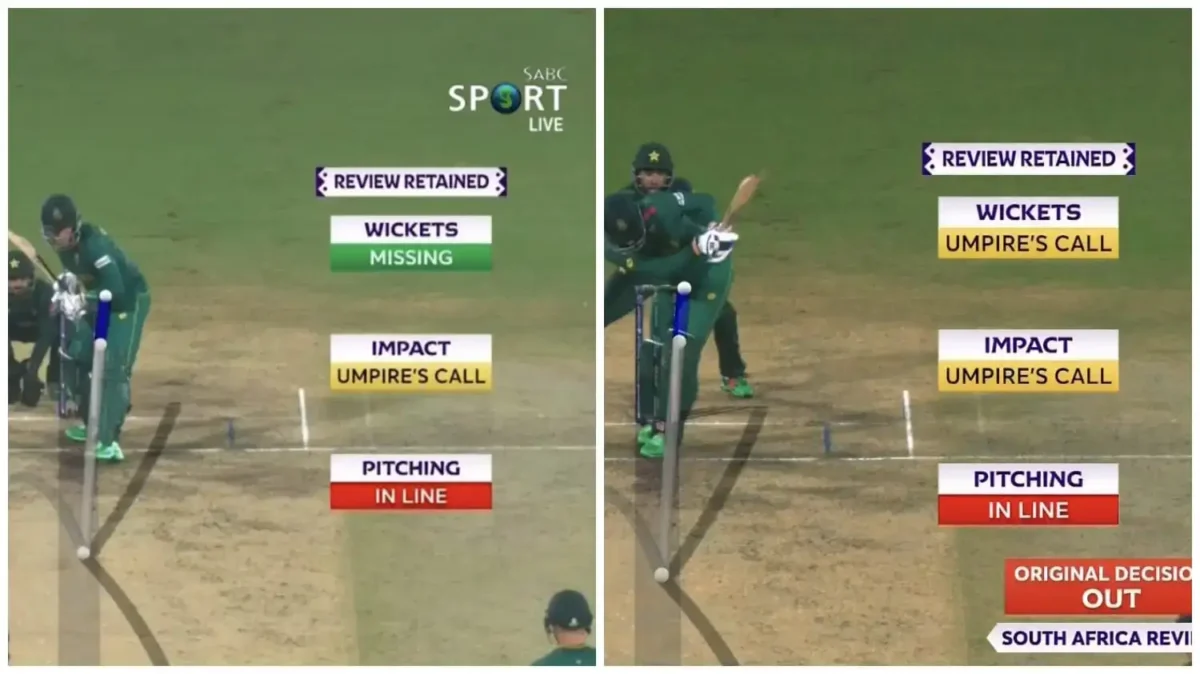 The drama unfolded in the game between Pakistan and South Africa when Rassie van der Dussen was given out in the 19th over. The replay initially showed the wickets missing, but it immediately reloaded and showed the umpire’s call on hitting. Since the on-field umpire gave it out, Rassie had to walk back.