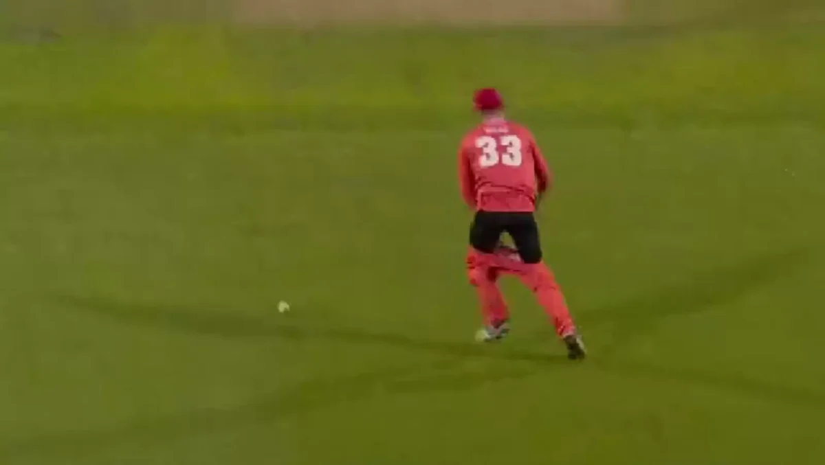 Richard Gleeson, the bowler, delivered a high full-toss to Shadab Khan, who looked to swat it down the ground. However, there was no timing on the shot and the ball ballooned up to the mid-off fielder Dane Vilas. He ran forward and put in a brilliant dive to attempt a catch bu shelled it eventually.
