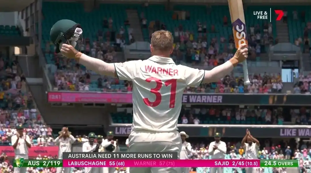 Labuschagne complemented Warner’s aggression with a solid performance, punctuated with occasional lofty shots against the spinners. Their partnership ensured a smooth chase, with minimal disruptions. Warner’s knock marked his 63rd fifty-plus score in Test cricket, making his final appearance in this format even more special, particularly after being honored with a guard of honour led by Shan Masood and his team.