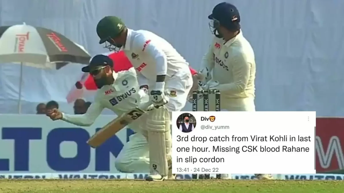 Here’s how fans reacted as Virat Kohli multiple dropped catches in the slips in the Test against Bangladesh