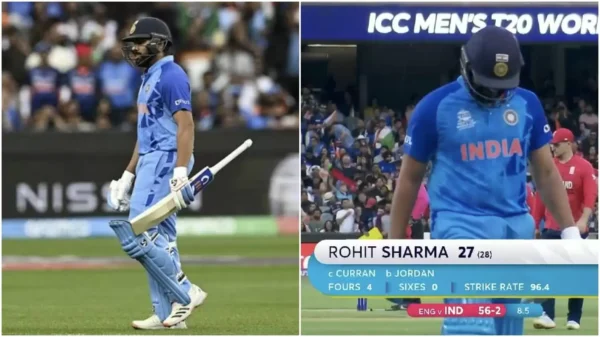 India skipper Rohit Sharma’s poor run continued at the ongoing T20 World Cup 2022, with him scoring a scratchy 27 off 28 in the second semi-final against England in Adelaide on Thursday.