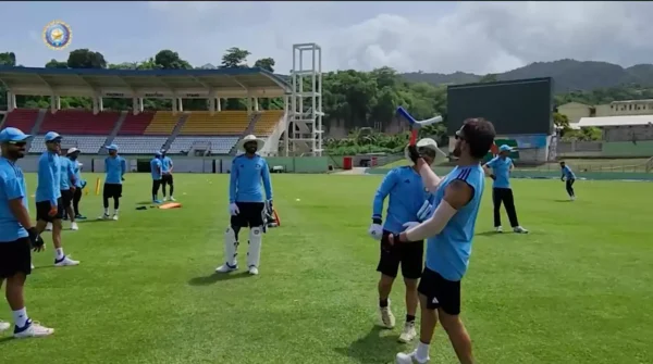 Notably, one longstanding weakness for the Indian team has been slip-catching. The drill involved catching a tricolored object with three handles, with the objective of grasping it by a specific colored handle.