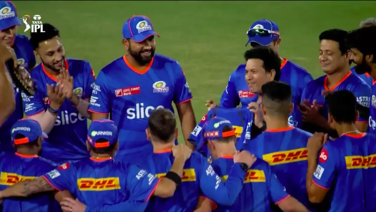 MI’s ex-skipper Rohit Sharma was adorned with a new commemorative jersey by none other than Master Blaster Sachin Tendulkar. Rohit, who has led the franchise to all five of their IPL titles before relinquishing the captaincy reins to Hardik Pandya received a special jersey ahead of his 200th match for MI.