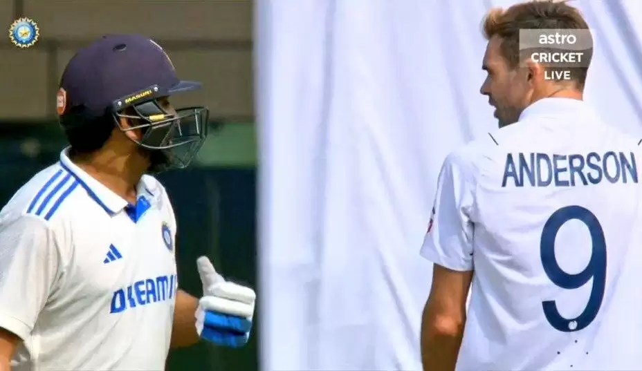 In the 13th over of the match, fast bowler James Anderson exchanged some words with India captain Rohit Sharma. Rohit looked to nudge a ball through the leg side but got an inside edge. Jaiswal was looking for a single but Rohit seemed to refuse to the call for a moment. But realizing that his partner was way down the pitch, Rohit responded and got a cheeky single.