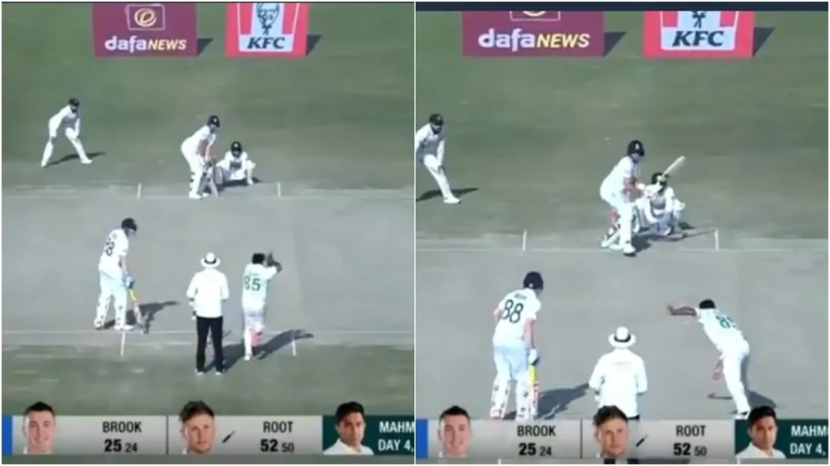 The incident happened at the very beginning of the 23rd over in the third innings of the first Test, leaving fans and commentators shocked as Joe Root turned into a left-hander to counter the line that Mahmood was operating with to try and keep the runs down.