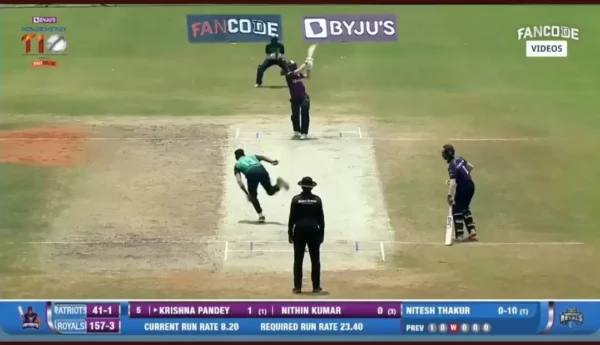 Playing for the Patriots, the right-hand batter took the Royals seamer Nitesh Thakur to absolute cleaners, with each of his strokes sailing well over the ropes.