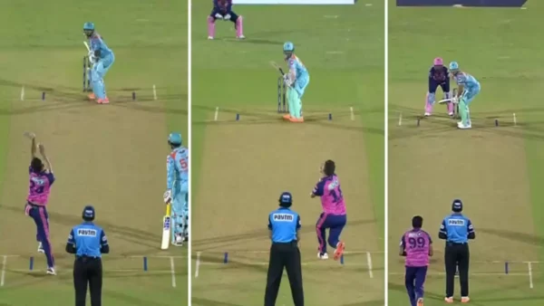 The breach was observed just as Ayush Badoni came out to bat in the middle at No.3. The out-of-form young talent lasted just one ball at the crease after being pinned LBW by RR left-arm quick Trent Boult, but his violation of the rules was apparent.