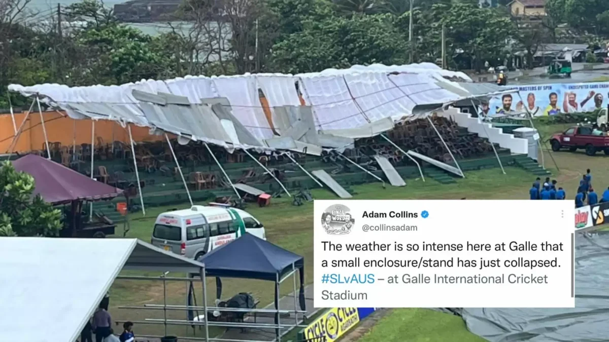 The roof of a temporary stand put in place at the Galle International Stadium, which is hosting the two-match Test series between Sri Lanka and Australia, collapsed with strong winds and heavy rain on Thursday, June 30. According to reports, there was no one in the three-tiered structure, which was fully occupied on Day 1 of the ongoing Test.