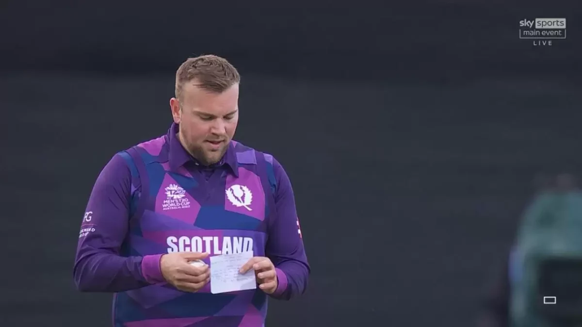 Mark Watt was seen referring to some notes from a sheet of paper during Scotland’s T20 World Cup 2022 opener against the West Indies on Monday, and the spinner revealed on social media what it was all about.
