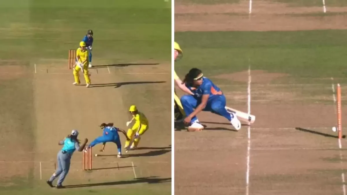 Indian left-arm spinner Radha Yadav was involved in a spectacular run-out against Australia.