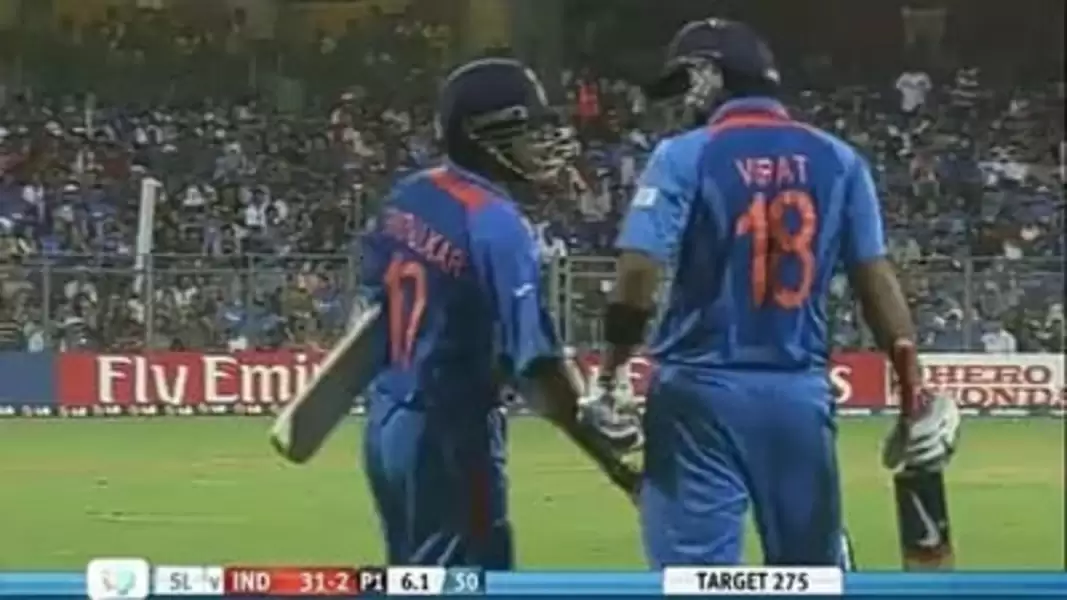 An image from the famous 2011 World Cup final against Sri Lanka is still etched in the conscience of the Indian fans. Taken for a sign of passing of the baton to the next generation, the legendary Sachin Tendulkar is seen crossing by the then young turk Virat Kohli after his dismissal against Lasith Malinga.