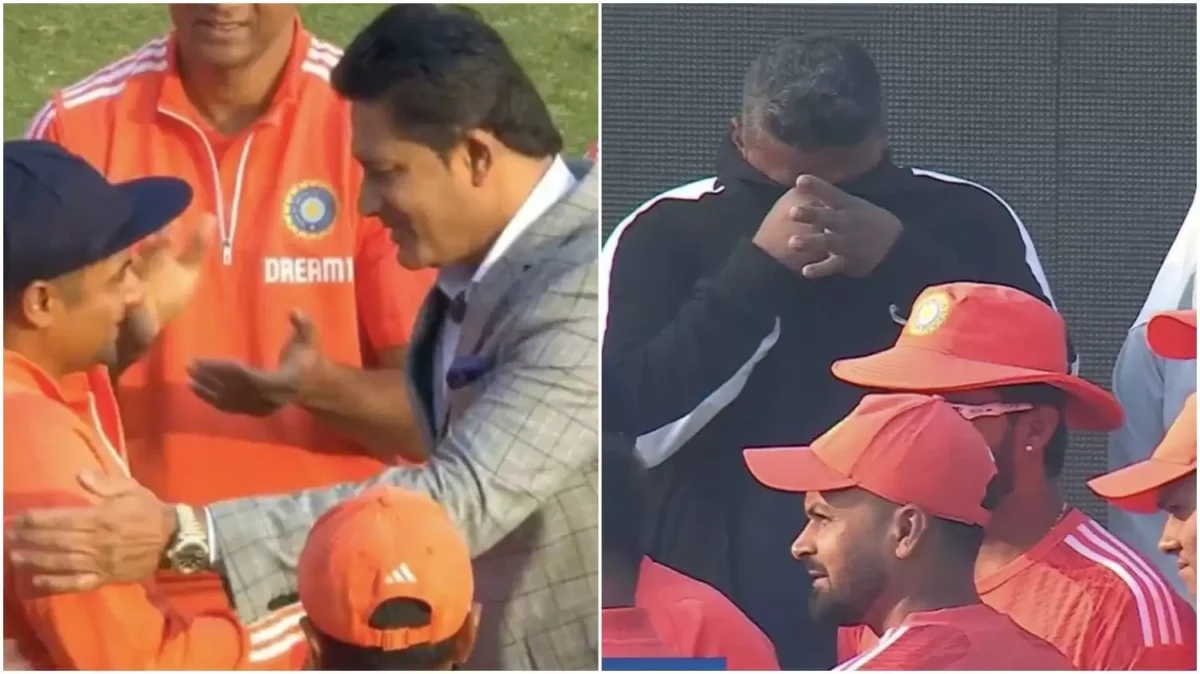 Sarfaraz was seen hugging his family after getting the cap and posing for the photos as well. Alongside Sarfaraz, wicketkeeper Dhruv Jurel also received his maiden international cap from Dinesh Karthik. Jurel replaced KS Bharat, who was having a torrid time with the bat. He became the 312th Test cricketer for India.