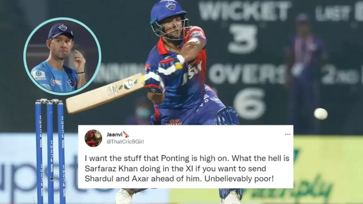 Delhi Capitals (DC) head coach Ricky Ponting attracted heavy criticism after his team’s questionable decision to delay the arrival of uncapped Indian batter Sarfaraz Khan to the pitch for Sunday (April 10) afternoon’s IPL 2022 game against the Kolkata Knight Riders (KKR).