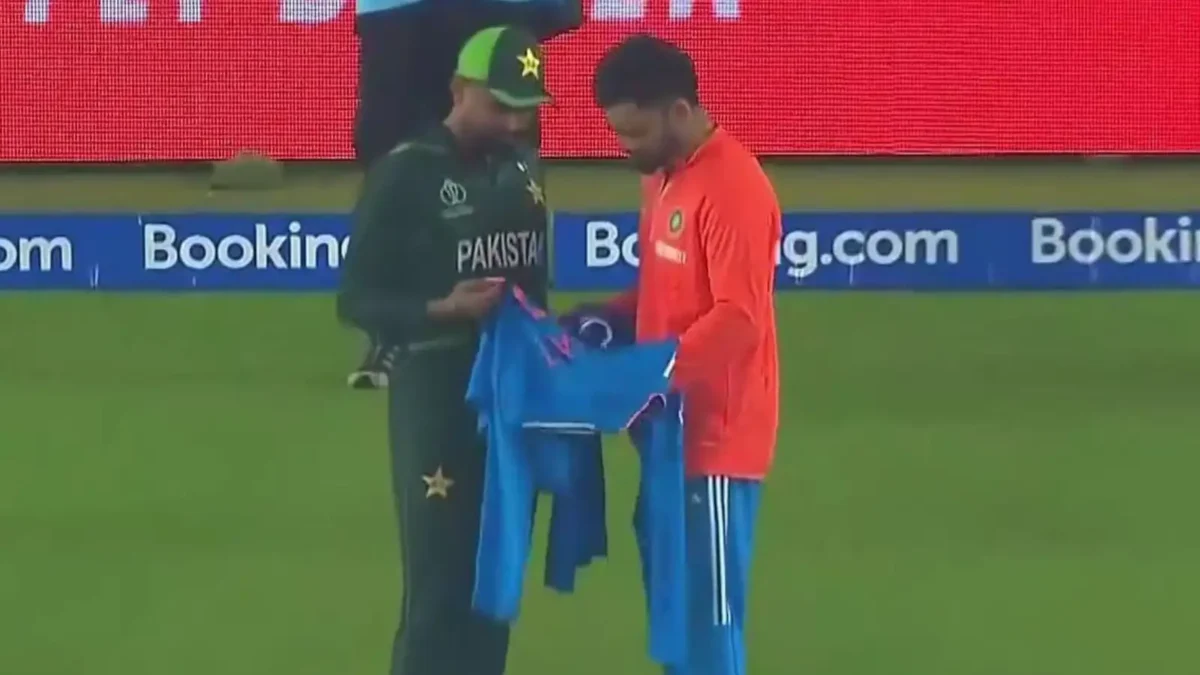 Virat Kohli gave one of his jerseys with his signature on it to Babar Azam after the end of a high-octane clash between India and Pakistan in the Narendra Modi Stadium in Ahmedabad.